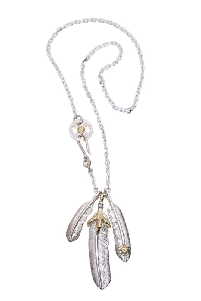 P-569R K18イーグルグラブ付フェザー(L)12万7600円/P-004R フェザー(S)1万4630円/P-520L K18付 フェザー(M)3万9820円/O-063+P-077B K18付メディスンホイール付きチェーン(S) 50㎝ 4万3340円