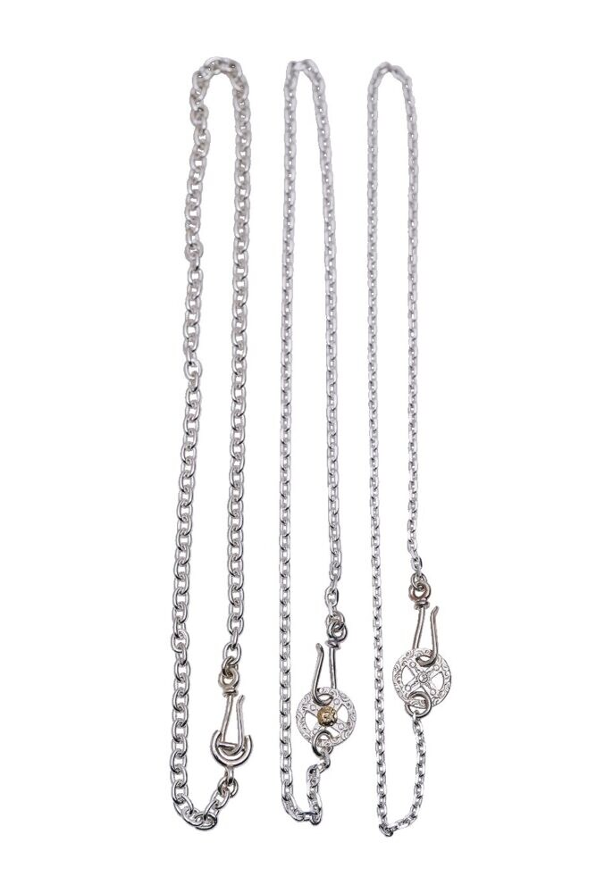 O-061(2) 1.5φチェーン(L) 50㎝(4万7300円)/O-062+P-077B K18付メディスンホイール付き1φチェーン(M) 50㎝(4万8180円)/O-063+P-234B メディスンホイール付きチェーン(S) 50㎝(2万7170円)