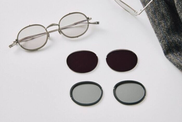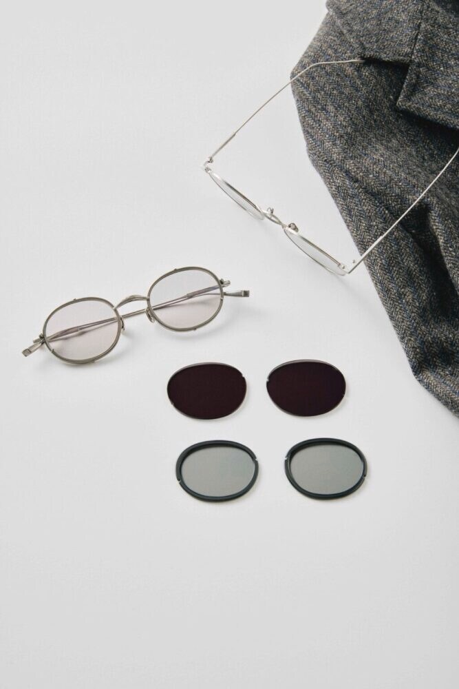[1015]は一見シンプルなダブルブリッジだが、いわゆる武骨さだったりナード感のようなものは感じられず、ミニマルでモダンな印象。実はこのブリッジパーツは、上から見ると前後反対にそれぞれが湾曲している独創的な形で、これは高速道路のジャンクションに着想を得ているという。言われなければ気づかれないこのディテールが、プロダクトの佇まいを左右している。一方で[804]は、より機能面において革新的で、なんとその日の気分やスタイルによって、自身でレンズの付け替えが可能。それでいて見た目が機能に引っ張られることもなく、むしろその機能こそがデザインの一部だと思わせてくれる。ゆえに「アイヴァン 7285」は、機能をデザインに、ひいては実用をスタイルに落とし込むプロフェッショナルなのだ。