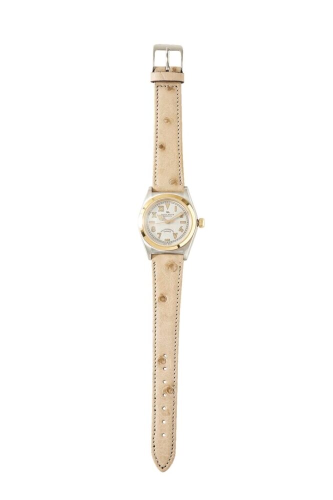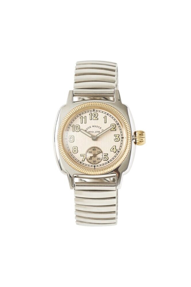 ブランドの初代プロダクトである、1920年代に誕生した世界初の防水防塵腕時計をベースとしたモデルのアップデートバージョン。本体には職人の手によりエイジング加工が施されている。こちらもエクステンションベルトを採用。3万8500円