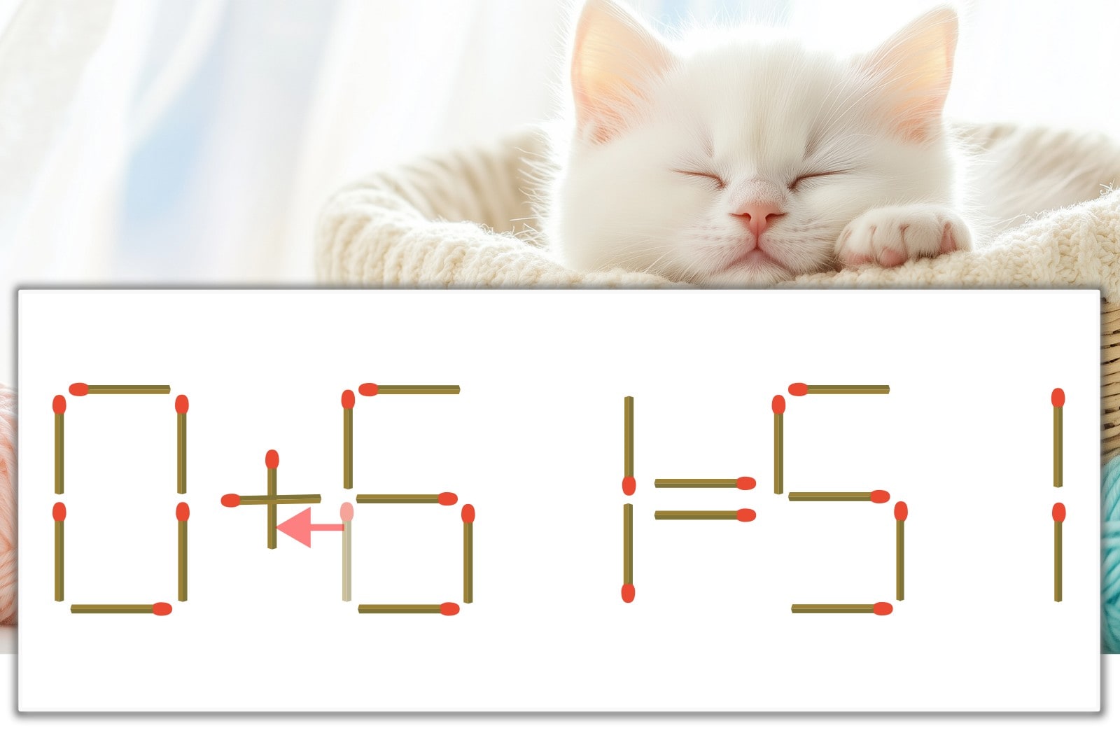「6」を別の数字に変化させると答えが導き出せます。「6」のマッチ棒を1本移動して、「-」を「+」にしてみましょう。すると、「0+51=51」が成立します。