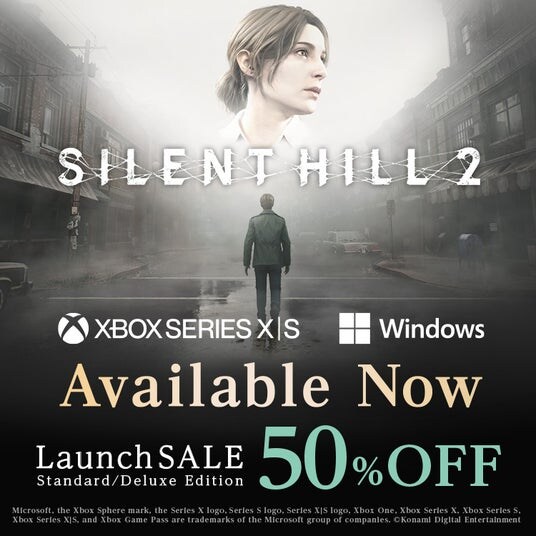 また、待望の『SILENT HILL 2』Xbox版を本日から発売開始します。さらに、「SILENT HILL f & SILENT HILL 2 デュアルパック」のXbox版・Windows版も同日から発売開始となります。発売記念ローンチセールでは、『SILENT HILL 2』を50%オフ、そして「SILENT HILL f & SILENT HILL 2 デュアルパック」を20%オフで販売いたします。お得なこのチャンスをお見逃しなく。