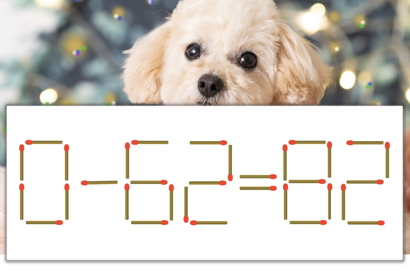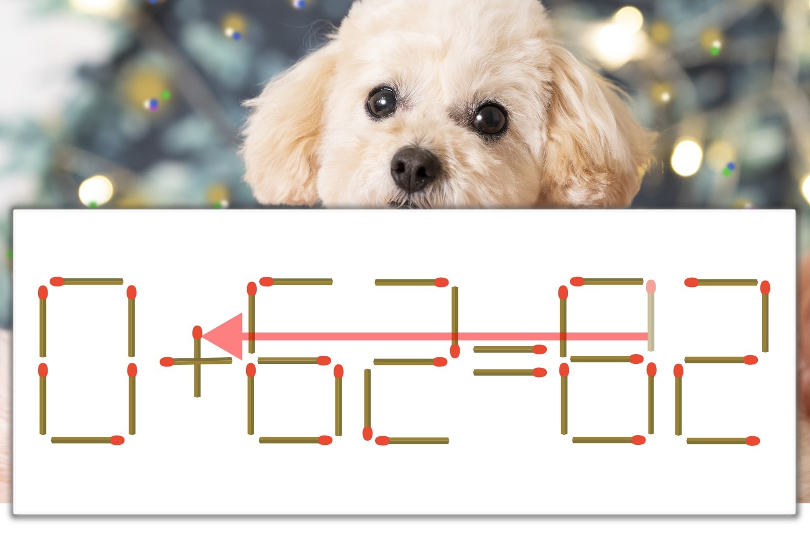 「8」を別の数字に変化させると答えが導き出せます。「8」のマッチ棒を1本移動して、「-」を「+」にしてみましょう。すると、「0+62=62」が成立します。