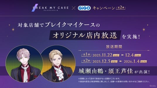 株式会社GENDA GiGO Entertainment(本社:東京都港区 代表取締役社長:二宮 一浩、以下「当社」)は、当社の対象店舗において、2025年12月5日(金)より、株式会社coly(本社:東京都港区 代表取締役社長:中島 杏奈)が手掛けるアプリゲーム「ブレイクマイケース」とのコラボレーションしたキャンペーン第2弾を開催いたします。