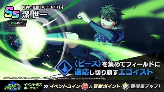 期間限定コラボイベント「BLUE BREAKER」で活躍する潔が入手できるピックアップガチャを開催いたします。
