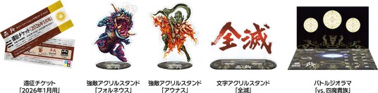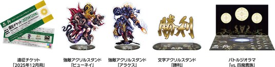 ※遠征チケット5枚で「強敵アクリルスタンド」「文字アクリルスタンド」「バトルジオラマ」のいずれかの特典と1つと交換いたします。「強敵アクリルスタンド」「文字アクリルスタンド」「バトルジオラマ」のいずれか1つをお選びください。但し「強敵アクリルスタンド」はブラインドです。種類はお選びいただけません。