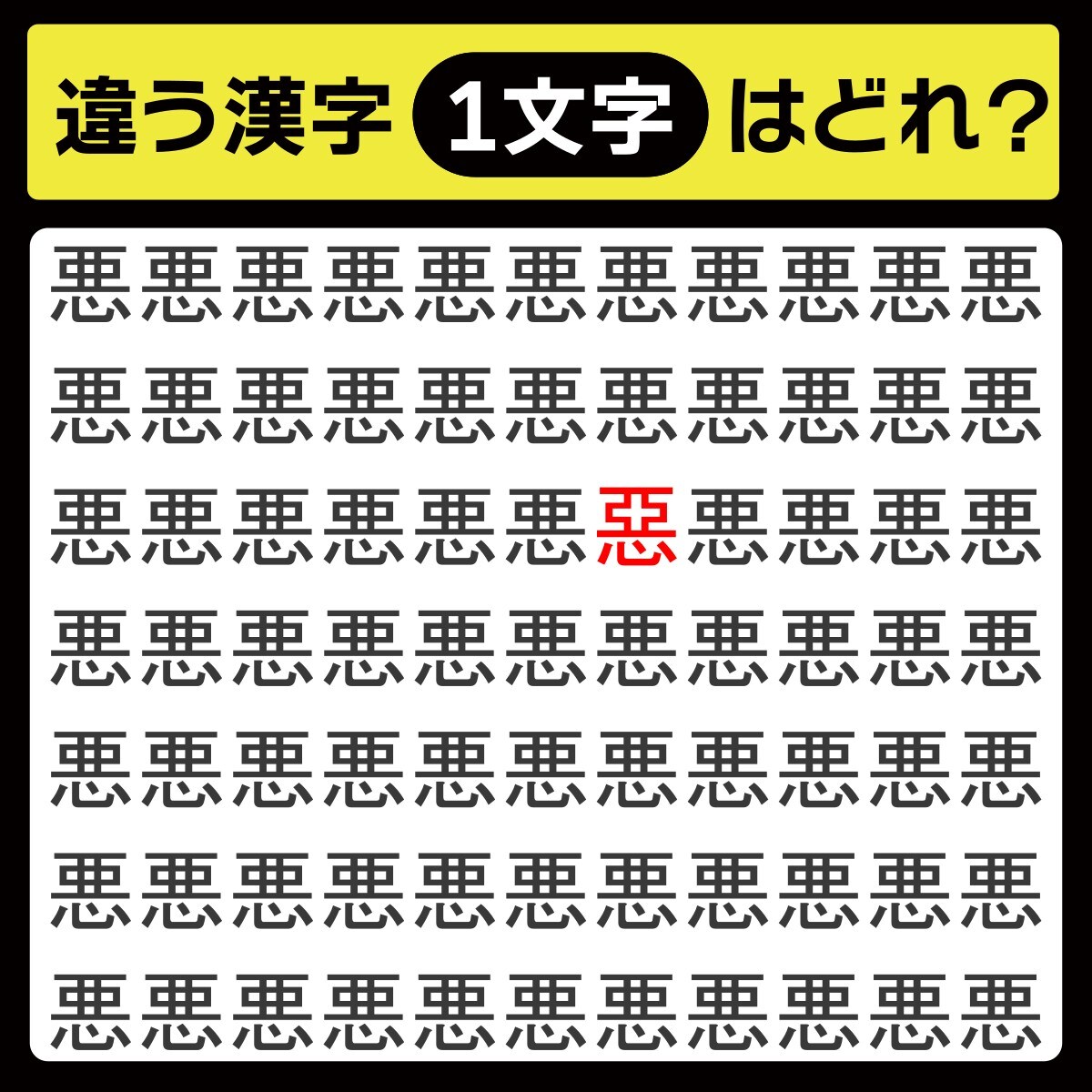 違う漢字は、上から3行目、右から5番目の文字でした!