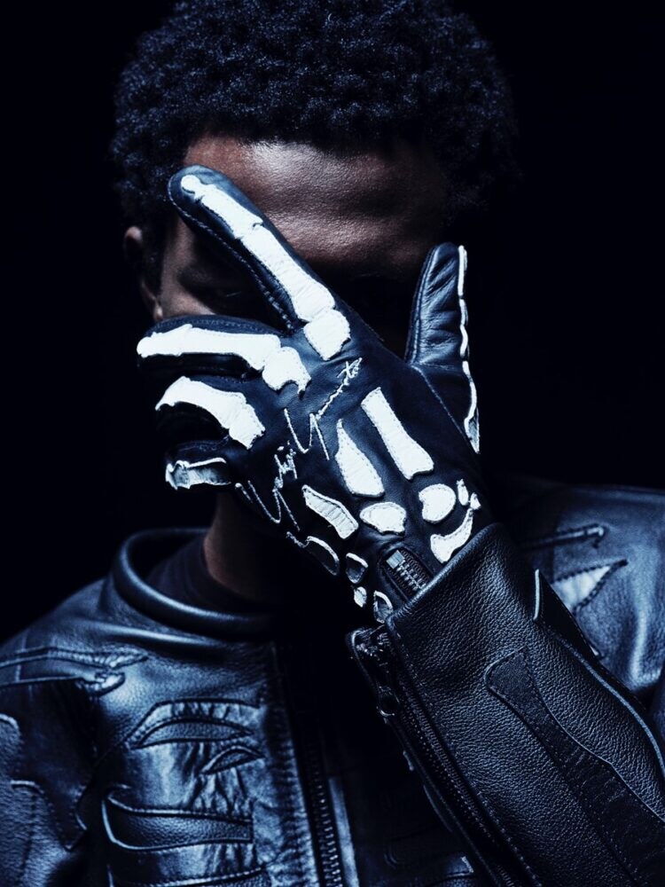 本コレクションでは、VANSONのクラシックなプロダクトをベースに、BONEデザインをYohji Yamamoto POUR HOMMEの視点から再構築したジャケット、バッグ、グローブを展開する。ジャケットはシングルライダースに立体的な骨モチーフのダブルレザーパネルを配置。カラーレスデザイン、フロントジップ、バックル、外ポケット、スリーブ肩位置のオーバルワッペンなど、VANSON伝統の仕様を採用している。BONE柄のトートバッグは、ハンドルの長さを調整し、フロント・バックパネルやレザーパッチの配置を変更した特別仕様。いずれのモデルにもBONEグラフィックとYohji Yamamotoのネームを施している。ジャケット購入者には限定ノベルティーとしてBONE TEE SHIRTを用意する。