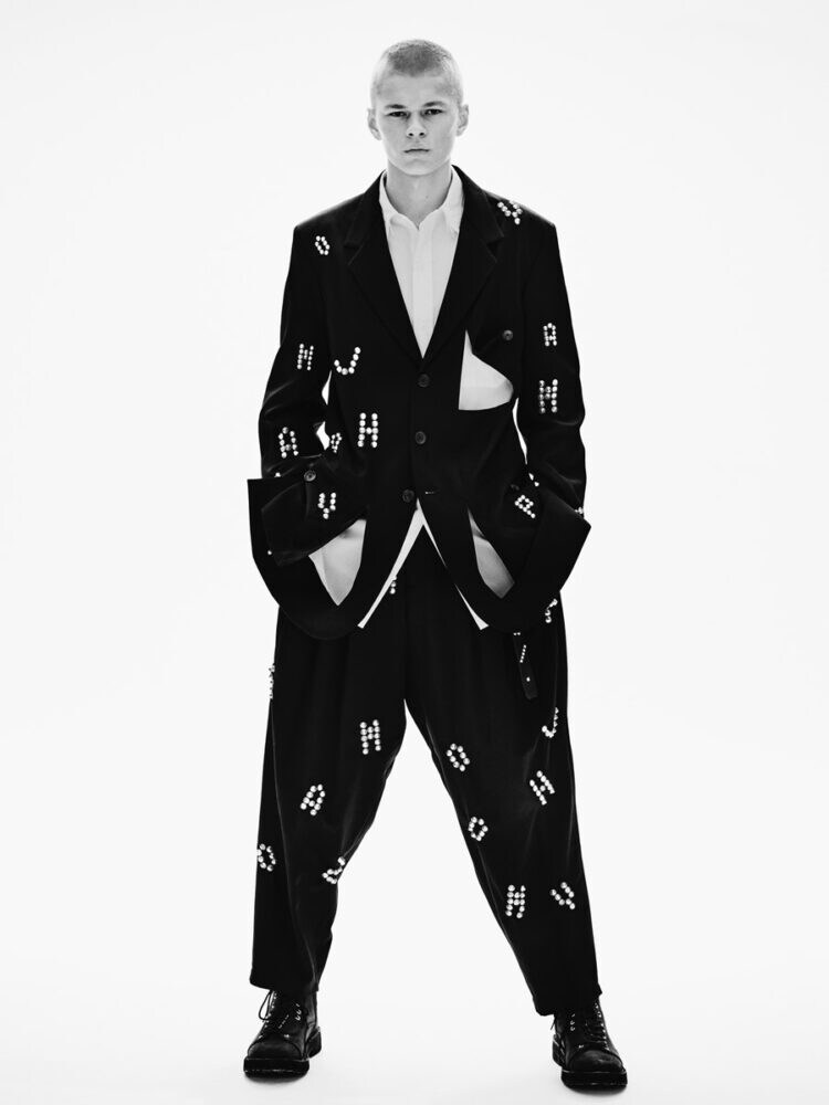 本コレクションでは、トラッカー型デニムジャケットに手作業によるスタッズワークで“YOHJI”の文字を表現。また、ウールギャバジン素材のジャケットとパンツによるセットアップにもHTCの装飾加工を施し、1点のみのエクスクルーシブアイテムとして制作している。熟練職人の手作業によって生まれる個体差や温かみのある表情が魅力である。さらに、スタッズショルダーバッグ、スタッズベルト、スタッズブレスレットなどのアクセサリーも展開しており、ヨウジヤマモトのデザインとHTCの職人技が融合した特別なラインナップとなっている。