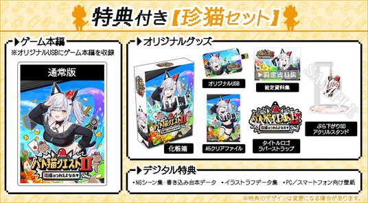 好評につき予約受付数を追加で50名まで拡充した、主演の「猫元パト」さんが購入者の名前をゲーム内で呼ぶオーダーメイド版の「『パト猫クエストII 珍猫はつれえよなあ』特典付きあなただけセット」(税込み29,700円)が残りがわずかとなっています。