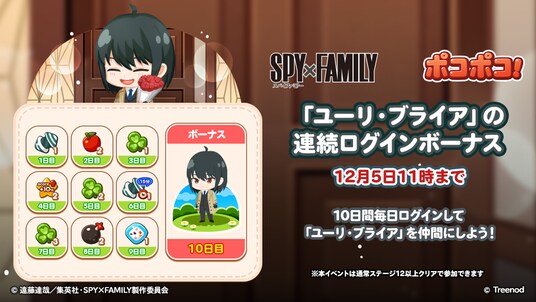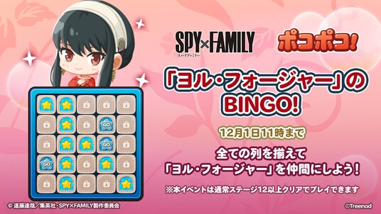 LINEヤフー株式会社は、当社が展開する3マッチパズルゲーム「LINE ポコポコ」(iPhone・Android対応/無料)のサービス開始から11周年を記念したコラボレーションの第3弾として、TVアニメ『SPY×FAMILY』とのコラボレーションイベントを本日11月21日(金)より開催します。