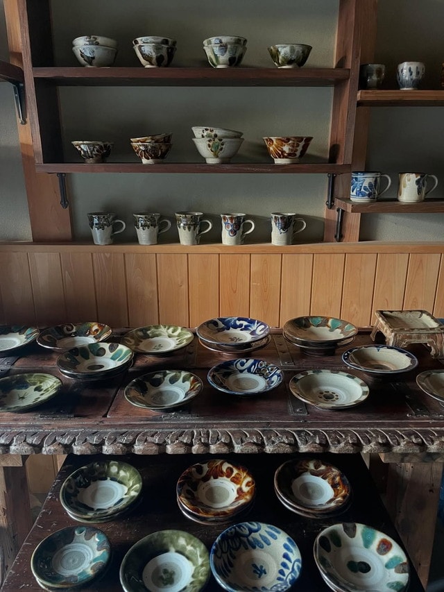 扱っているのは、茶碗に湯呑み、マグカップ、急須、小皿、大皿、酒器、壺など、日常に彩りをプラスしてくれる器たち。関西はもちろん、秋田や沖縄など全国各地からあたたかみのある民藝作品を集め、約300点もの商品が並びます。
