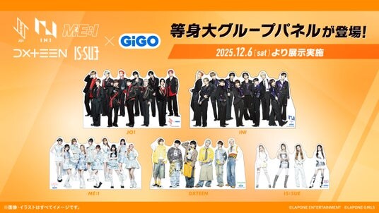 2025年12月6日(土)より、東京、大阪、福岡などのGiGOグループの大型店舗で、各グループの「等身大グループパネル」を巡回展示いたします。巡回展示スケジュールの詳細については特設サイトよりご確認ください。