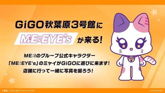 GiGO秋葉原3号館に、ME:Iのグループ公式キャラクター「ME:EYE‘s」のミャイが登場します。