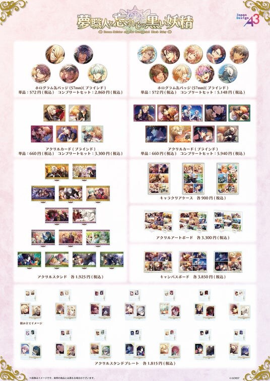 今回のグッズには、「プリムスクラブ」「ガストロノミー」「虹の彼方」のマイスターと、彼らと関係の深い黒妖精たちが勢ぞろい。また、コラボカフェでは特製のドリンク&フードが販売されます。