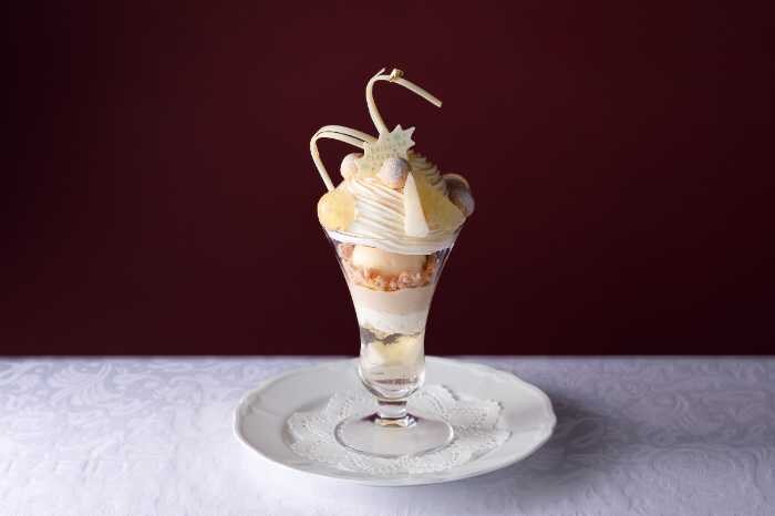 12月2日(火)~25日(木)の期間限定で登場する「レアチーズのホワイトクリスマスパフェ」は、ほんのりスパイシーなレアチーズとシャンパンジュレ、シナモンクッキーの組み合わせで、ホリデーシーズンにぴったりの華やかな味わい。