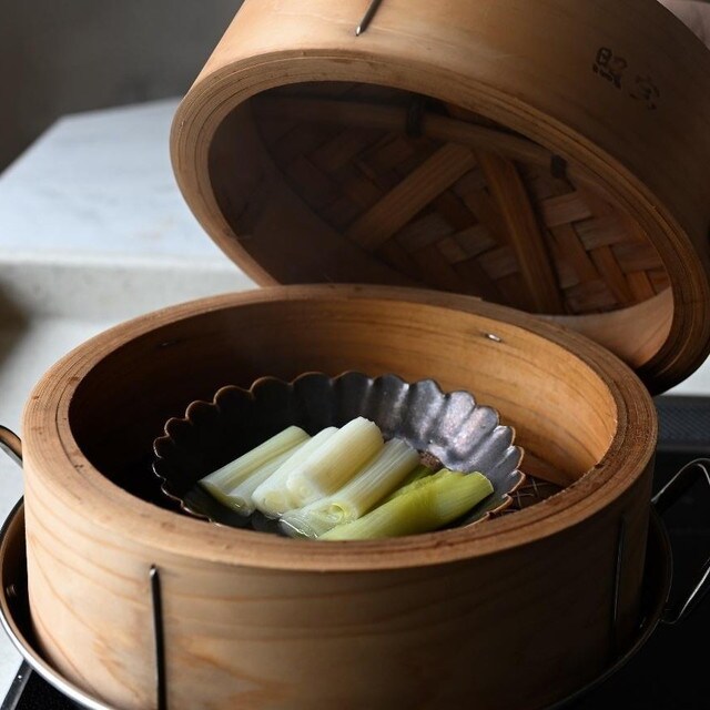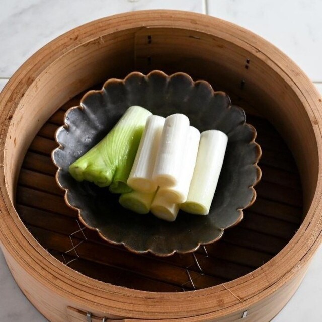 「せいろで蒸しておいしい食材は何ですか?」とよく質問されるのですが、冬は間違いなく“白ねぎ”とお答えします。白ねぎは体を温める効果があるといわれており、冬の太った白ねぎは蒸すとトロトロになって甘みもアップ。シンプルに塩、黒こしょう、オリーブオイルにちょっとレモンを絞って食べるのがおすすめです。