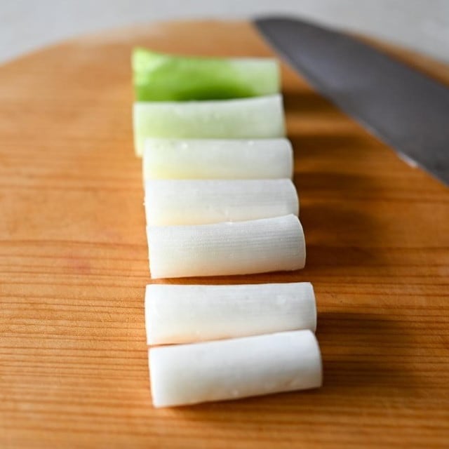 【01】白ねぎは5cm幅に切る。