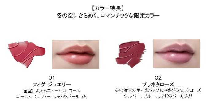 冬空をイメージした限定色は、粘膜ローズカラーに微細パールを配合。トレンド感のあるツヤを与え、唇に立体感とかわいらしさをプラスします。