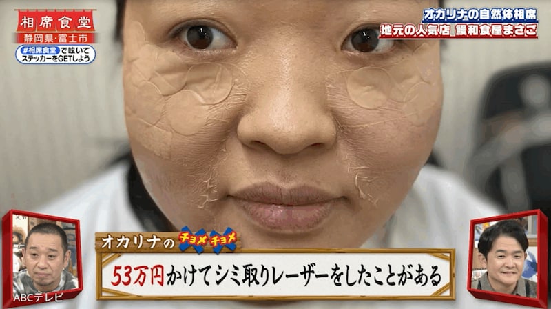 なんとオカリナは、53万円もかけて肌のシミをレーザーで治療したのだとか! 「もともと教えてもらったところがコースのところで結構するから、じゃあ一発いくらのところに行った方がいいと思ったんですけど、1回じゃ消えなくて。結局通う羽目になるから、じゃあもうコースでいいやっつって、そこに行っています」と語り、実際の治療後の写真も公開した。
