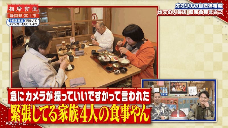 まさかの黙食に千鳥は、「なんで(オカリナに)仕事があるん!?」「気になるのよ、その奥のゴッドファーザーみたいな方が。いつ怒り出すのか」「急にカメラに『撮っていいですか』って言われて緊張している家族4人の食事やん」などとツッコミまくり。見かねたスタッフが、「おいしいですか?」とたずねると、オカリナはようやく「一言も言っていなかったですけど、すごくおいしいです」とコメントし、その場にいる全員を笑わせた。