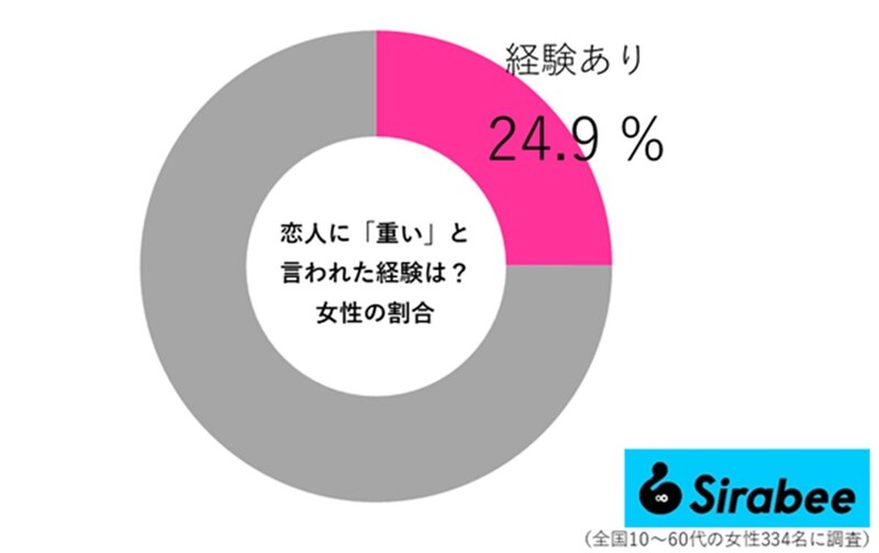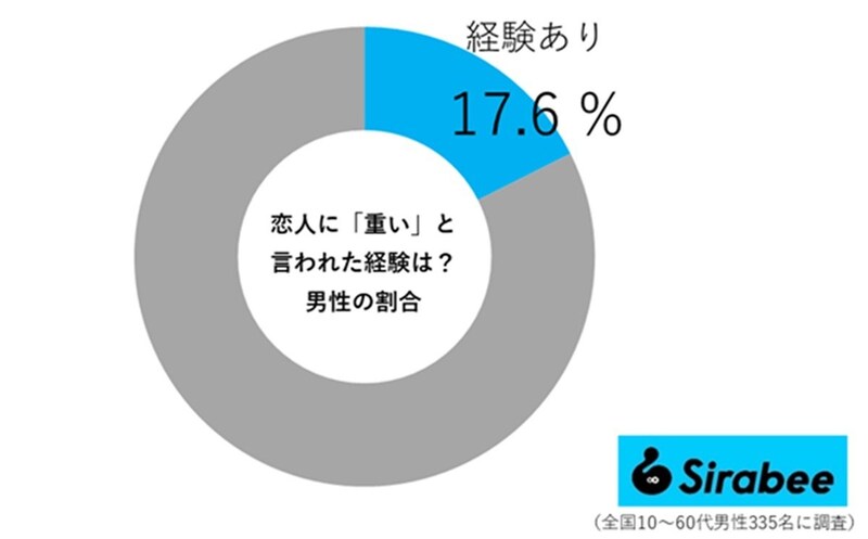 ■恋人に重いと言われた経験がある人の割合まずは、Sirabee編集部が「恋人に重いと言われた経験があるか」について、アンケート調査を実施。すると、男女669の回答を得ることができ、男性17.6%女性24.9%が「経験あり」と回答しました。