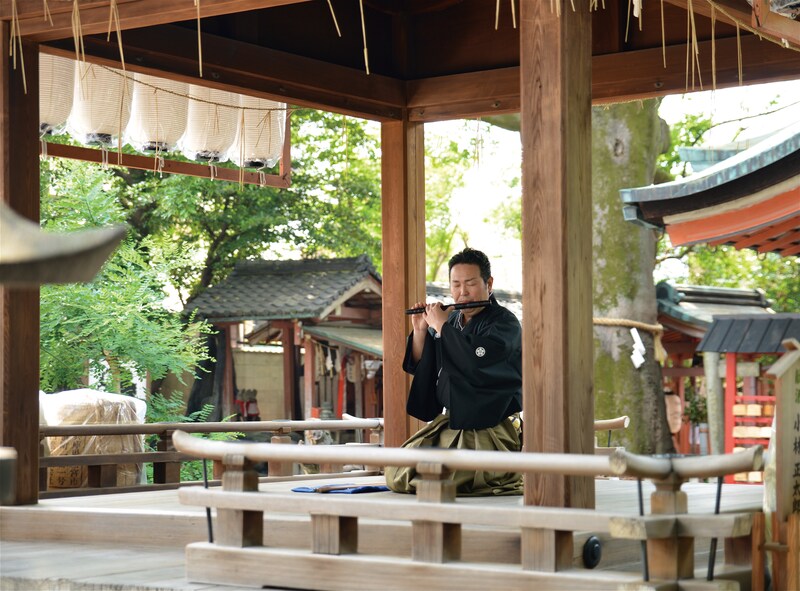 山本さんは約30年、民俗芸能・古典芸能を学び、現在、横笛奏者としては藤舎貴道(とうしゃ きどう)という名前でも活動しているプロの奏者です。