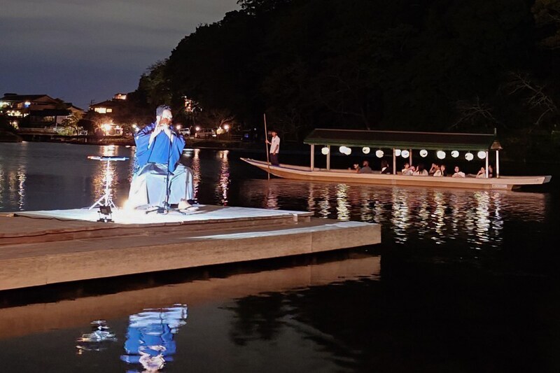 嵐響夜舟(らんきょうやふね)嵯峨嵐山を流れる大堰川(桂川)に浮かべた屋形舟より、渡月橋を渡る月と音楽を楽しむイベント
