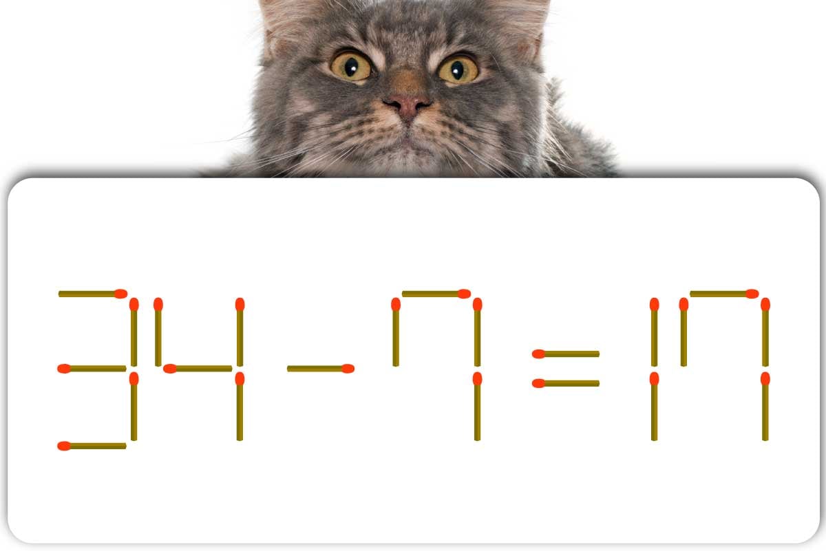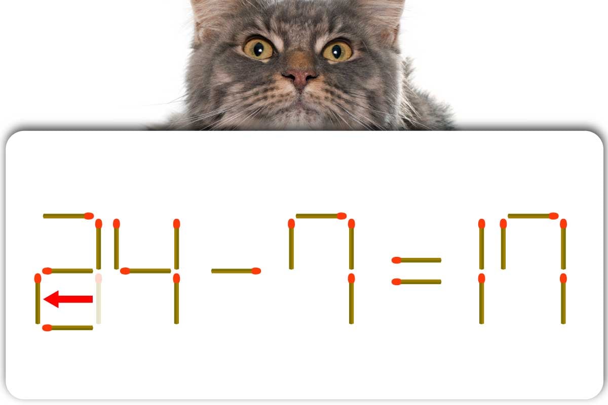 「3」のマッチ棒を1本、左にスライドさせて「2」を作り、「24-7=17」にする。※解答は複数ある場合があります。