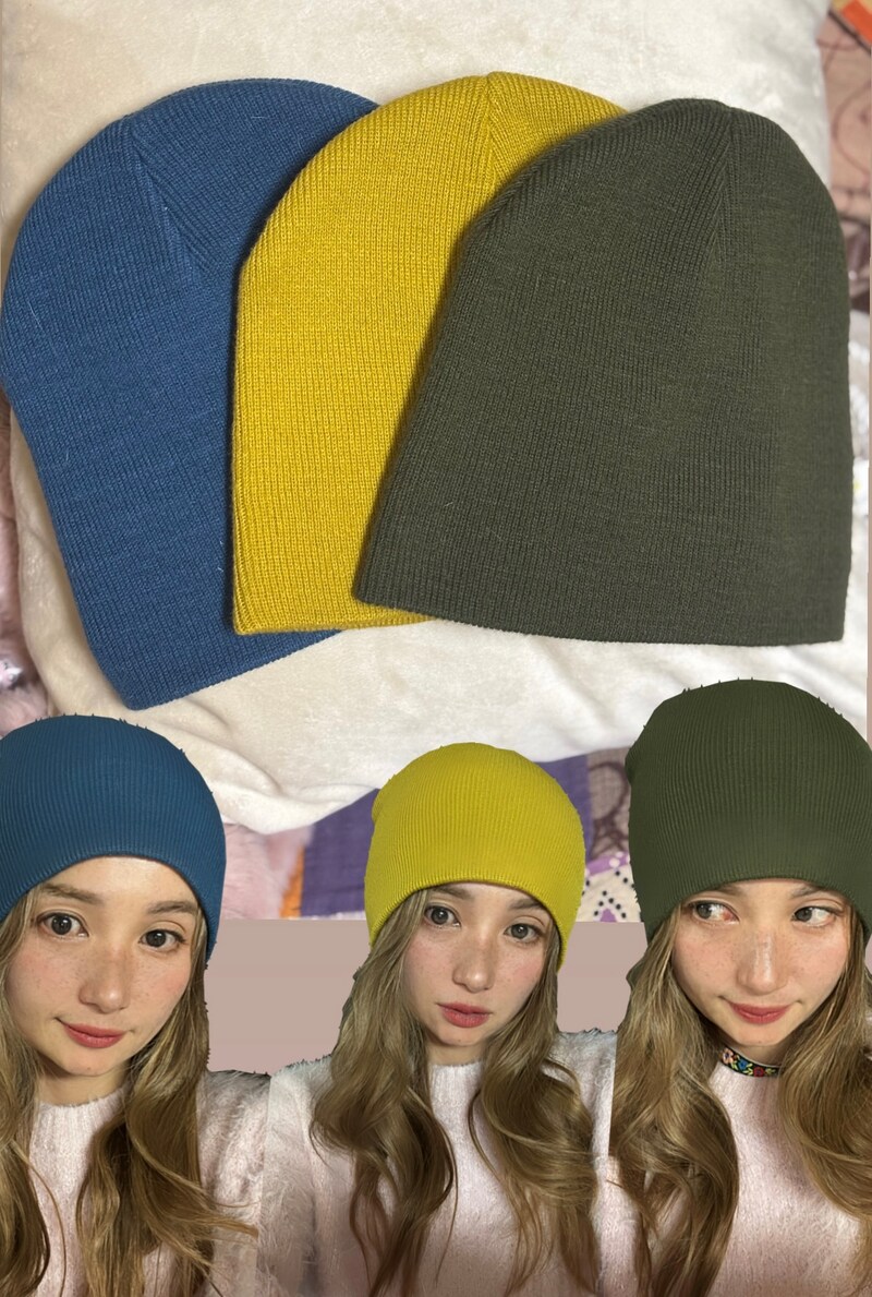 ニット帽かぶったらカジュアル感やアウトドア感出るし、フレアスカートとかにも合うから、色んな着回しができそう!ちなみに3色展開でした!