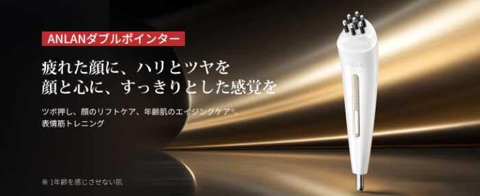「ANLANダブルポインター」は、多極ブラシヘッドでRFによる温熱ケアとEMSによる表情筋刺激が可能。