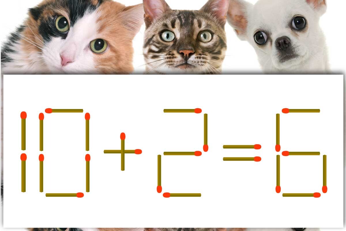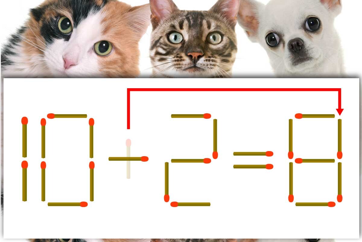 「+」のマッチ棒を1本、「6」に移動させて「8」を作り、「10-2=8」にする。※解答は複数ある場合があります。