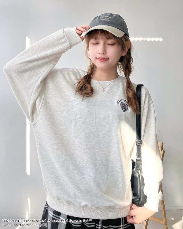 AS KNOW AS plusのトムとジェリーコラボスウェットは、ジェリー&タフィーの刺繍とセットのアクリルキーホルダーで遊び心満点♡