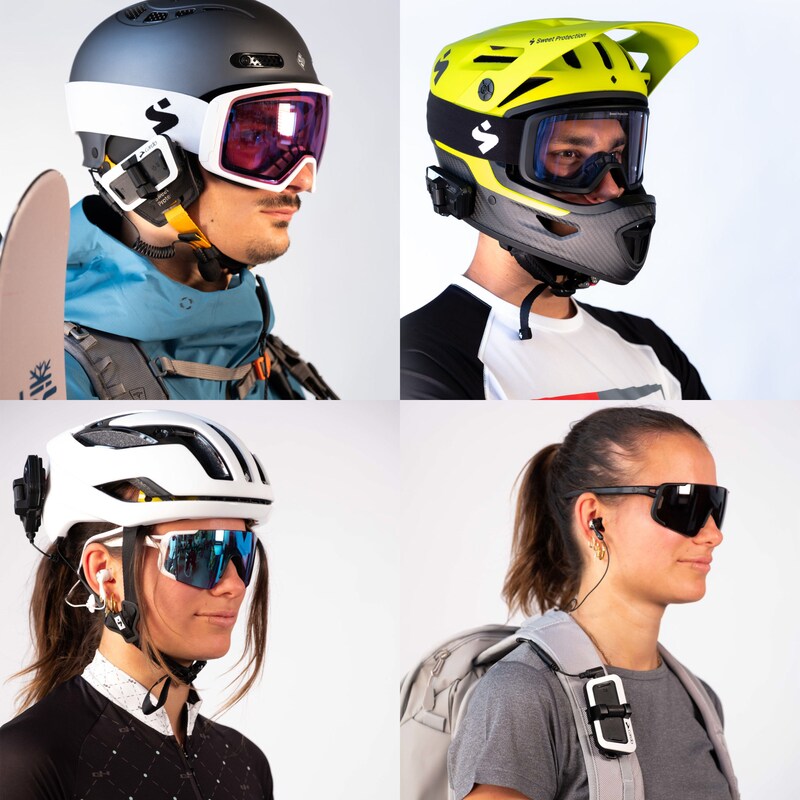 取り付け場所の自由度も高く、ヘルメットはもちろん、ゴーグル、バックパック、ウエストベルトなど、好みのスタイルに合わせて自由に装着できる。