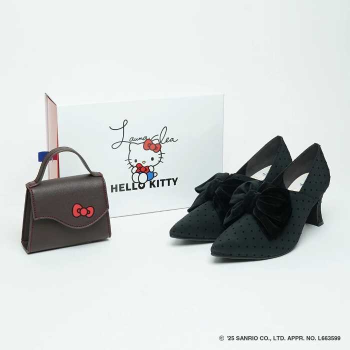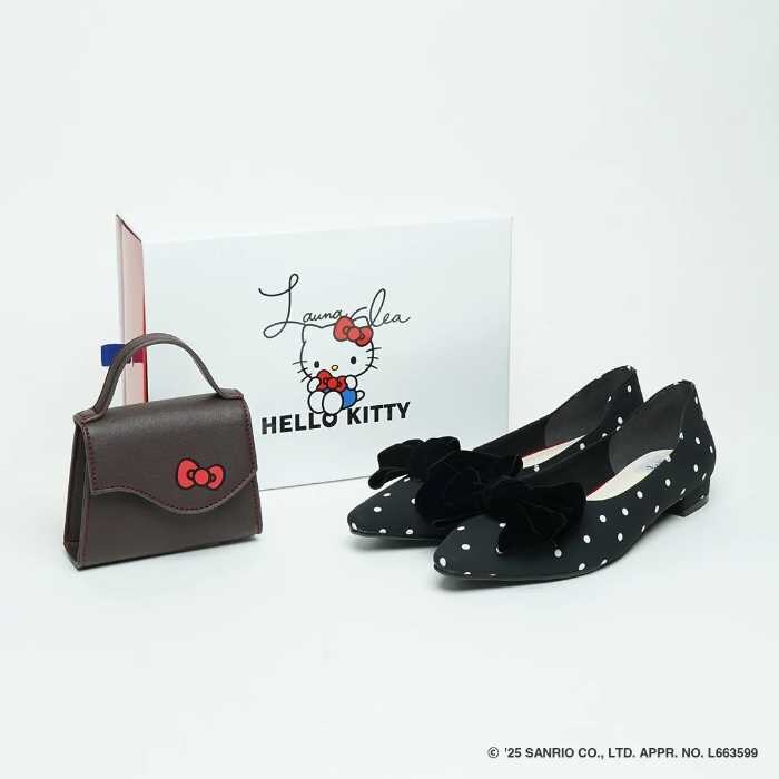 HELLO KITTYとLauna leaの特別コラボが登場♡ベルベットリボンをあしらったフラットパンプスやブーティは、クラシカルな中にHELLO KITTYらしい愛らしさをプラス。さらにミニショルダーバッグがセットになり、ギフトや自分へのご褒美にも最適です♪特別なBOX入りで開けた瞬間からワクワクする限定アイテムです。