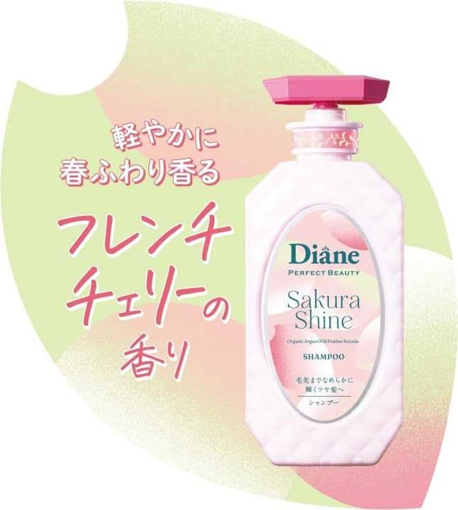 毎年大人気の限定シリーズ「ダイアン サクラシャイン」が、今年も数量限定で登場します。2025年12月1日(月)より発売される2026年版は、淡いピンクに葉桜をあしらった爽やかなデザインと、ふわりと広がるフレンチチェリーの香りが魅力。桜エキス1やオーガニックアルガンオイル2、独自のプラチナケラチン*3を配合し、毛先までしっとりツヤめく髪へ導きます。乾燥が気になり始める季節にぴったりの限定ケアで、一足先に春の気分を楽しんでみませんか♡