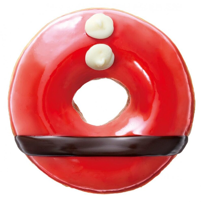 サンタは、"顔"と"身体"の2つのドーナツに分かれて登場。2つを並べると"全身サンタ"が完成するという遊び心満載の仕様です。