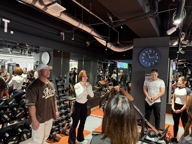特徴的だったのは、会員だけでなく非会員の人でも参加できた点です。新しく都内でオープンした店舗をきっかけに、多くの人にフィットネスに触れてもらう企画として設けられたようで、初めて来店した人でも楽しめる内容に構成されていました。参加者の年齢層も幅広く、気軽に立ち寄れるイベントとして地域に開かれていた印象です。