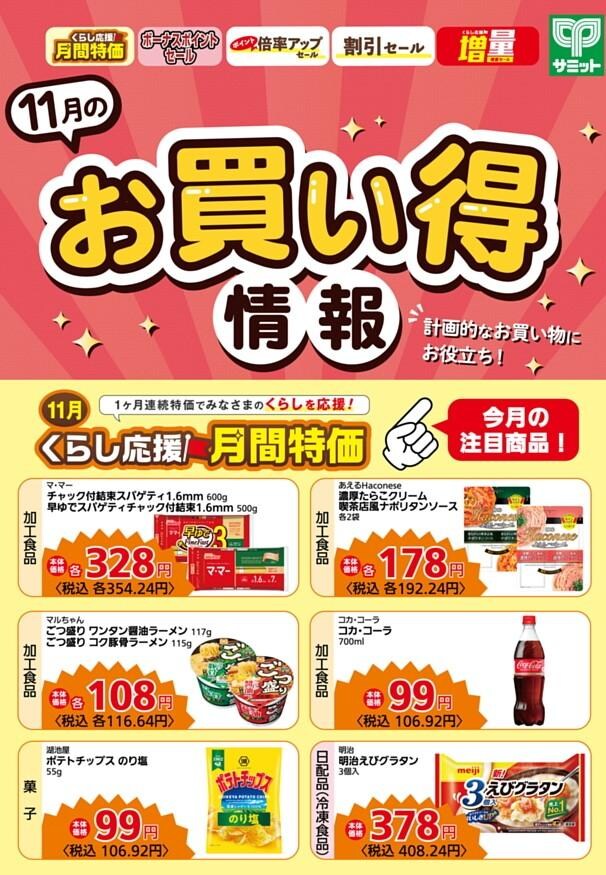 スーパーマーケットのサミットは、11月30日までの期間、月間特価価格で6品を販売中です。