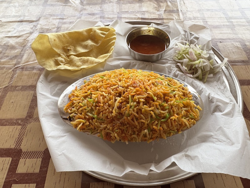 ……ということで、2025年某日、インドのポートブレアに出向いて、ビリヤニがおいしいと評判の大衆食堂に行ってみました。
