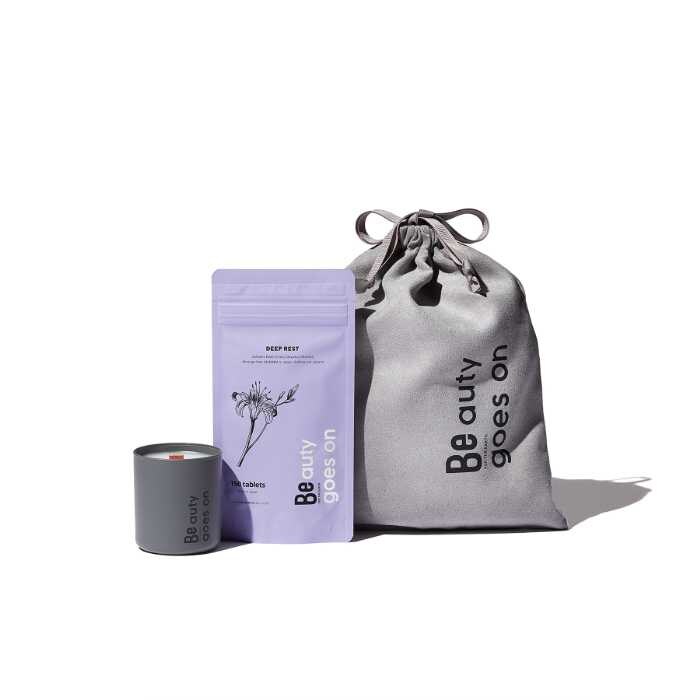 「ナイトフォレストコフレ」(8,250円・数量限定)は、休息サプリ「ディープレスト」(150粒)、トドマツ香るキャンドル(約110g)、オリジナル巾着のセット。