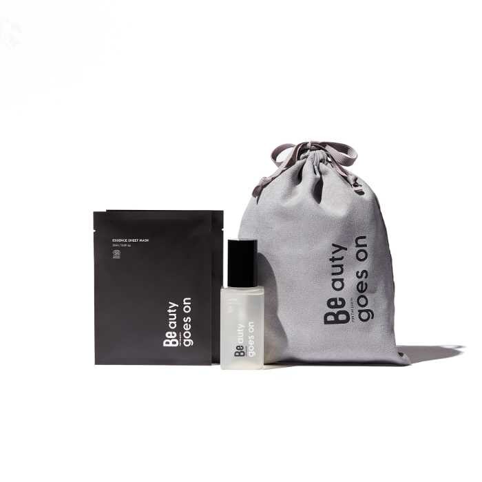 「Beリッチモイストキット」(8,800円・数量限定)は、「BeエッセンスシートマスクC」2枚(1枚23mL)と「BeローションC」現品(100mL)、オリジナル巾着入り。
