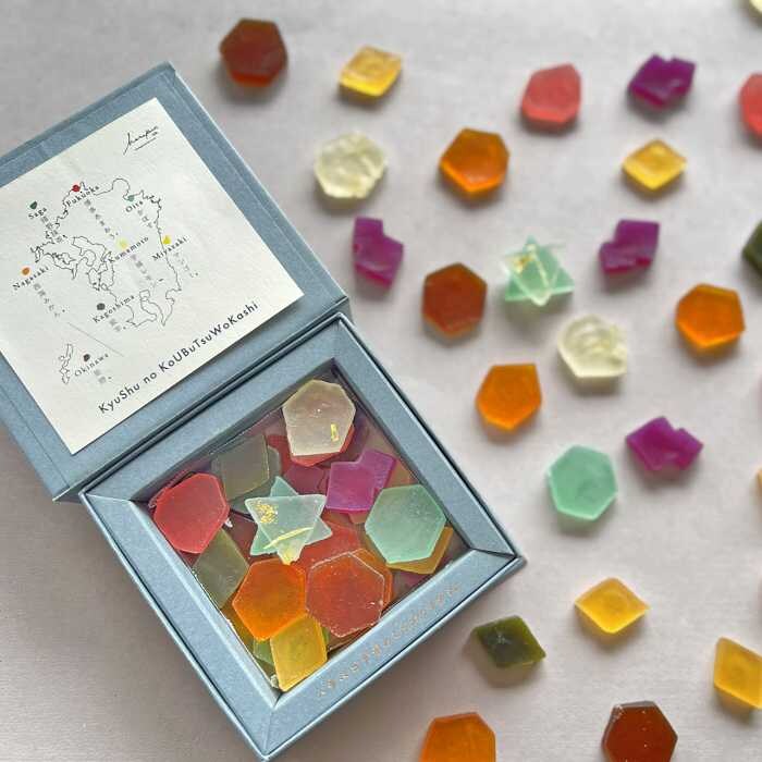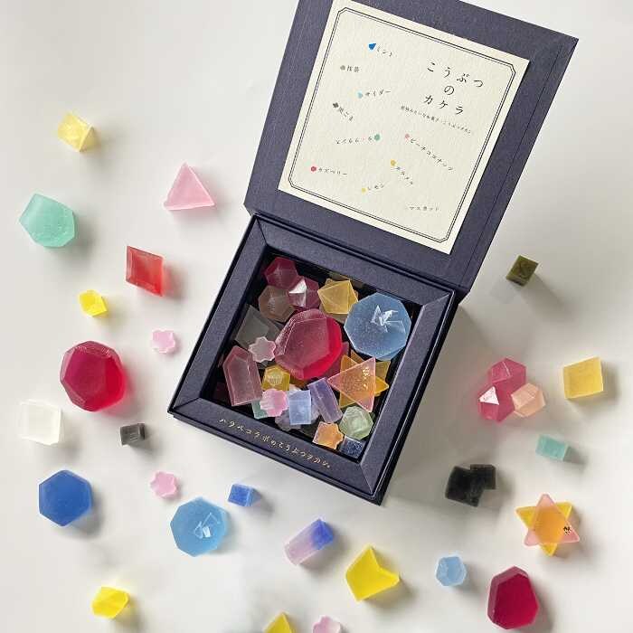 今回のポップアップでは、多彩なこうぶつヲカシが一堂に揃います。ハロウィン限定「こうぶつのカケラ」や「カプセル入りこうぶつヲカシ」、九州ならではの素材を使った「九州のこうぶつヲカシ」、誕生石をテーマにした「9月サファイア」「10月トルマリン」なども登場。