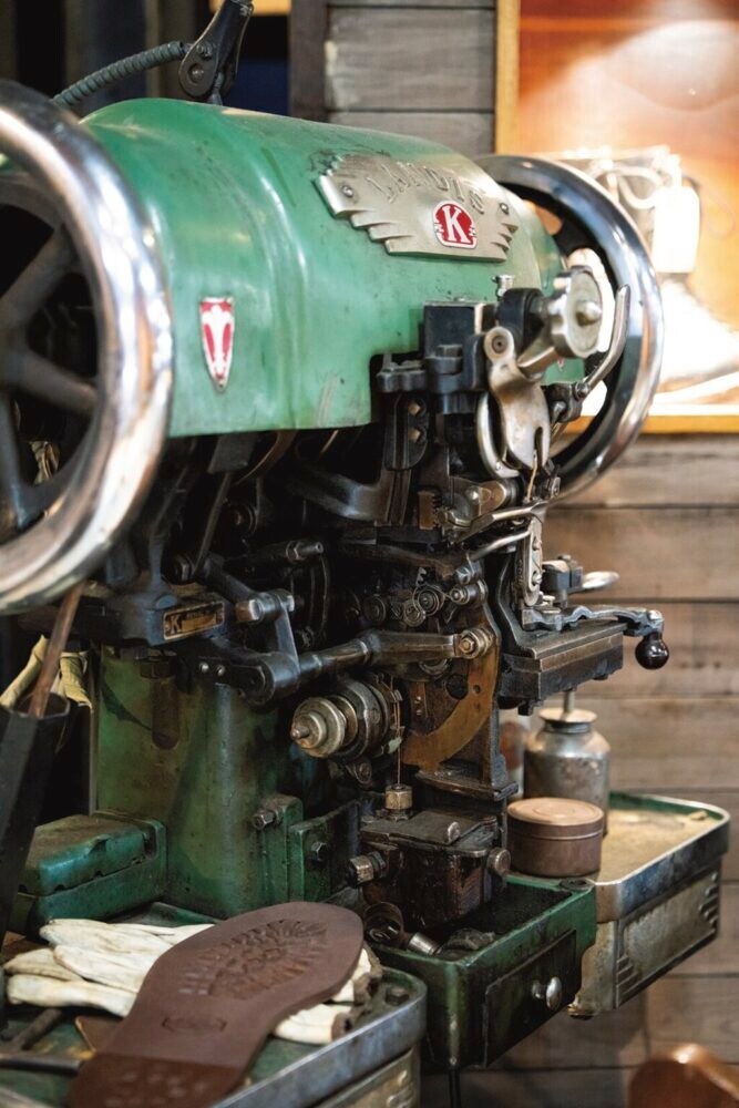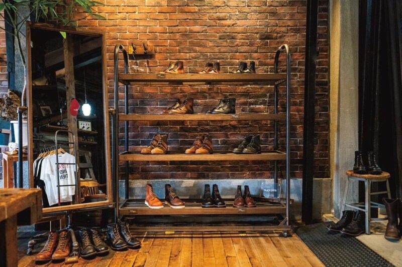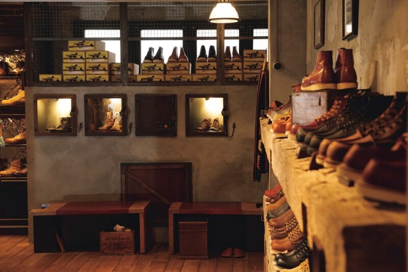 2015年にオープンした国内2店舗目の直営店。建物は1950年代初頭に材木店として建てられたもので、壁や天井の木材などは極力残すことで、RED WINGと同じく、長い歴史を感じさせる空間に仕上がっている。また靴作りに欠かせないヴィンテージのミシン類、製造過程のパーツも雰囲気良し。