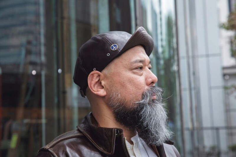 [A-2]に合わせて、キャップもブラウンレザーのものを着用。レザーのキャップは難易度が高そうに見えるが、同色のジャケットと合わせることで統一感が出る。