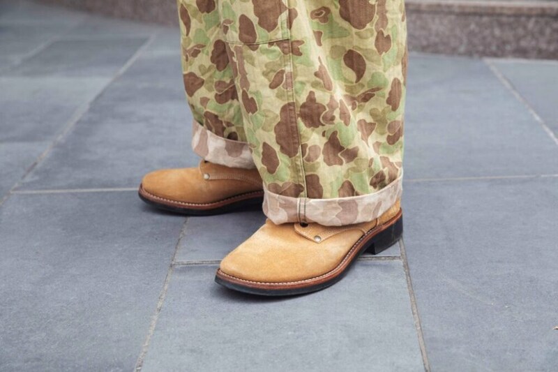 足元にはスウェードのM-43ミリタリーブーツを選択。ジャケットと靴の色を合わせるのも良いが、同色のなかで少しトーンをズラすことで程よい抜けが生まれる。西さんらしい一歩先ゆくテクニックだ。