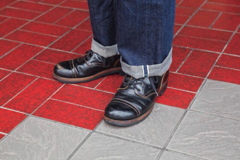足元はブラックのワークブーツをチョイス。ジャケットと革靴の色は、合わせるのがセオリーだが、意外にも難しく考える必要はない。