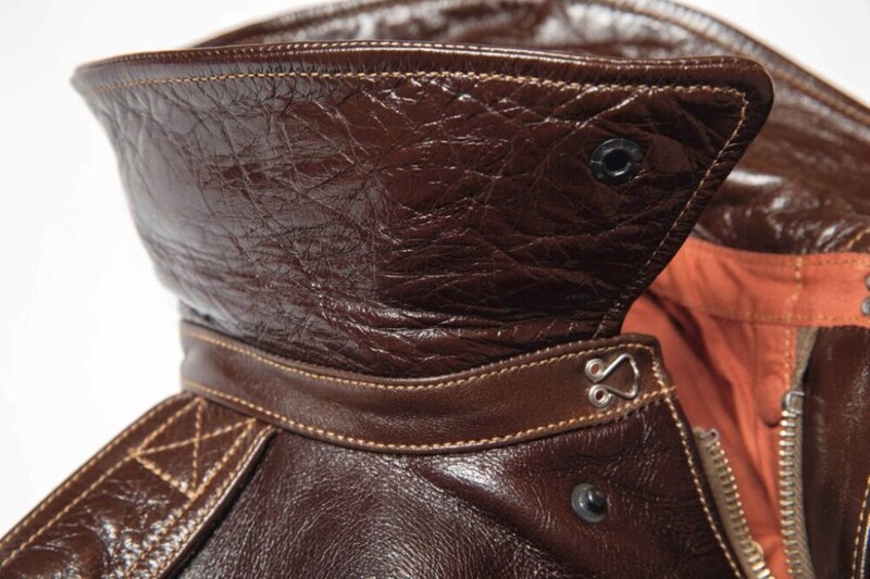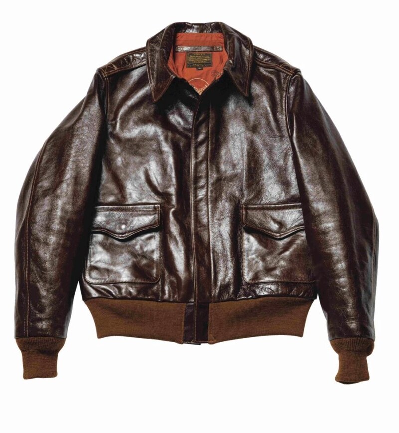[A-2]のコントラクターのなかでも計5度の納入実績を誇るラフウェア社の1942年製造のモデル。イタリア産の原皮をタンニン槽に漬け置きし、濃度を変えながらじっくりと鞣され、職人の手仕事によってアニリン染料で仕上げられたホースハイドには独特の色ムラがあり、着用を重ねるたびに風合いを増す逸品だ。24万2000円