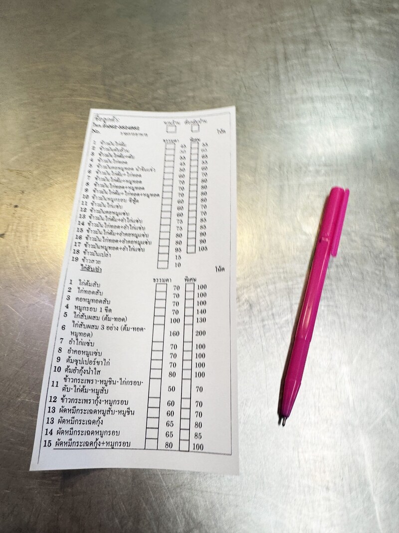オーダー用の紙が用意されています。オーダーする料理が決まったら、そこに記入して店員さんに渡し、代金を支払います。あとは完成を待つだけ。