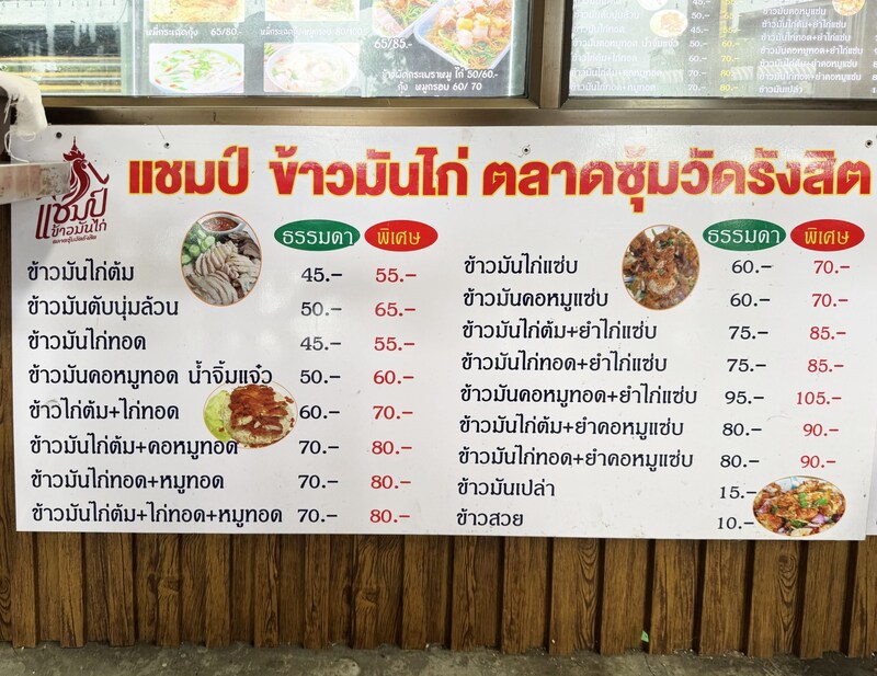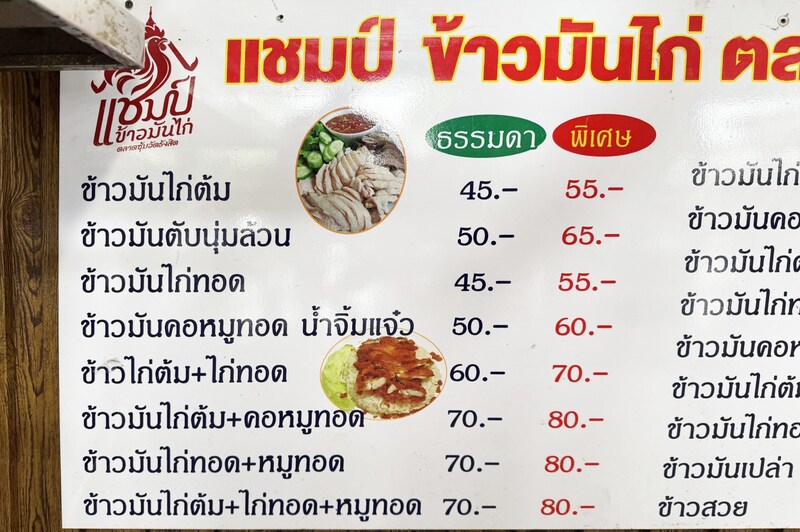 ちなみにメニューは豊富で、純レバーライス、揚げカオマンガイ、フライドポークライスなど、いろいろあります。肉好きにとってパラダイスなラインナップです。